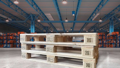 aglomerado plantea muchos desafíos técnicos. Comenzando con la impresión por inyección de tinta como parte del proceso de fabricación del palé, incluyendo la generación del código QR en tiempo real