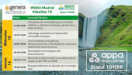 APPA Renovables analizará la Transición Energética en una edición de Genera marcada por el autoconsumo - 09/06/2022: APPA Renovables analizará la Transición Energética en una edición de Genera marcada por el autoconsumo