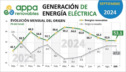 Appa Renovables . En concreto, el último año se ha alcanzado el 56,8% de electricidad renovable y, en lo que llevamos de 2024, el 57,5% de la generación ha provenido