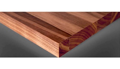 barnices o tintes para lograr una continuidad visual con la superficie del tablero. Su composición incluye láminas de 0,7 mm de espesor, reforzadas con una base de madera de 0,5 mm, alcanzando