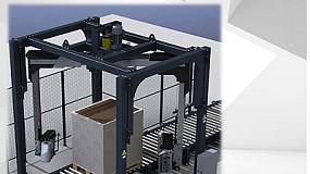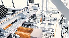 lugar de almacenamiento hasta la célula RowPaQ. Una vez completado el proceso de paletización, los palés se enfardan y se envían directamente mediante un transportador a la estación de expedición correspondiente.