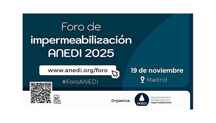 Foro de impermeabilización el próximo 19 de noviembre - 24/10/2025: ANEDI celebra su Foro de impermeabilización el próximo 19 de noviembre La Asociación Nacional de Especialistas en Impermeabilización (ANEDI) celebra su Foro