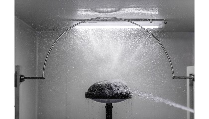frente a impactos (IK) y frente a intrusión de polvo y agua (IP) ATP Iluminación Prueba de grado de protección IP en luminaria ATP. Un potente chorro de agua incide