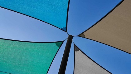 Gale Pacific Cobertura: ~50% del espacio de 84m x 12m Sistema utilizado: 6 paraguas comerciales de 7 m de ancho Tela: Gale Pacific Commercial 95 Beneficios: Protección UV, menos postes