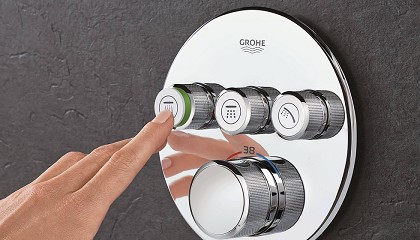 Grohe SmartControl Grohe cuenta en su porfolio con Grohe Grohtherm SmartControl empotrado, un termostato de cuerpo empotrado cuya instalación tras la pared y su diseño extremadamente discreto ofrece más espacio
