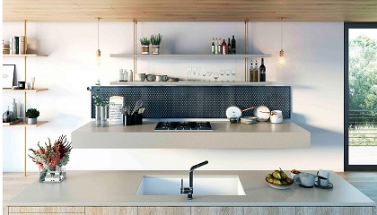 Hi-Macs que, compuesto por minerales, pigmentos naturales y acrílicos, ofrece una amplia serie de ventajas estructurales. Hi-Macs es, de hecho, resistente al fuego, al uso diario en zonas