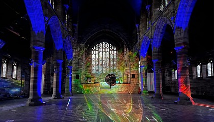 Hole – End of Time’ de Paul Alty se usaron proyectores de la marca, para mapear contenido impactante del artista visual Rocco Helmchen, en el icónico interior de la iglesia Old Christ