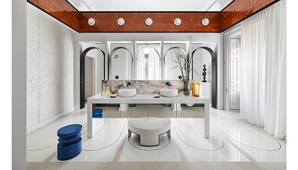 inodoro bidé AquaClean Alba e inodoro Geberit Acanto con TurboFlush. Fotos: Nacho Uribesalazar En palabras del interiorista Miguel Muñoz, creador del espacio Geberit: “En una llanura fértil, entre los ríos