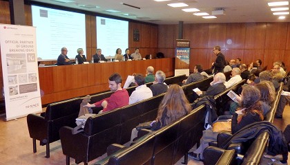 Moritz, del departamento de marketing y director técnico de LG Hausys, respectivamente. A continuación, Xavier Viladevall, gerente de Abalit Elementos moldeados, expuso diversos ejemplos de aplicación del material en casos