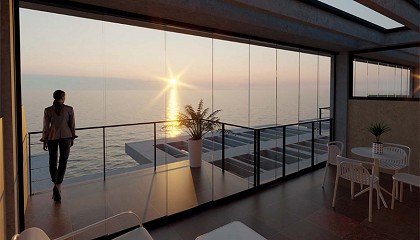 porche), haciendo posible el disfrute del paisaje desde el confort de la vivienda. Asimismo, Aura también propone un mayor aislamiento térmico y acústico, ofreciendo la máxima privacidad al usuario a la par que le permite