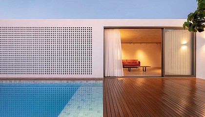 porches exteriores se han dispuesto celosías que filtran la luz, enriqueciendo el ambiente del interior. Unas celosías contribuyen a generar luz interior, a la vez que delimitan el espacio interior