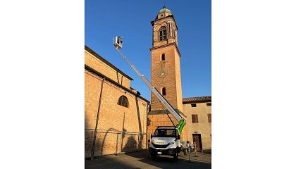tejas de la Iglesia de Santa Giulia, en Migliarina di Carpi (Módena), demostrando la versatilidad de la máquina incluso en entornos especialmente delicados. Redacción Interempresas La iglesia, diseñada en el siglo