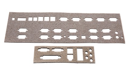 tela sobre espuma y pinturas de protección. Las juntas de elastómero conductoras de electricidad, que normalmente se utilizan en el sellado de huecos en las interfaces de la carcasa, son una excelente