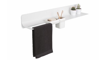 toallero o como base para composiciones de pequeños accesorios-. El orificio del soporte puede situarse tanto en el extremo izquierdo como en el derecho y no plantea ningún problema a la hora