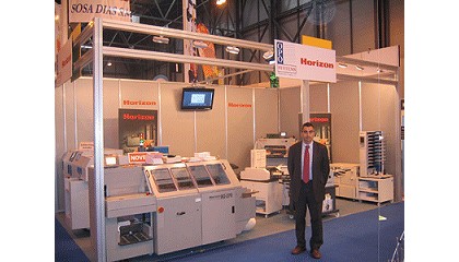BQ-270 y la plegadora automática de succión modelo Horizon PFP-330, que puede realizar distintos tipos de plegado: simple, paralelo, corto, acordeón, trípticos, plegado en cruz y plegado ventana
