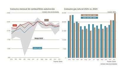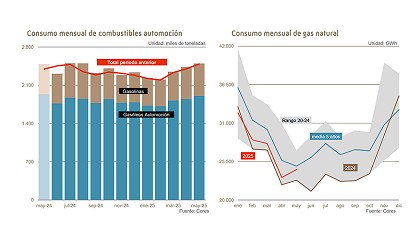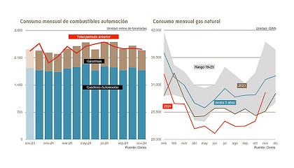 GLP registró un notable incremento del 20,5%, mientras que los querosenos aumentaron un 5,7%. En contraste, los fuelóleos fueron el único grupo que descendió en términos interanuales, con una caída