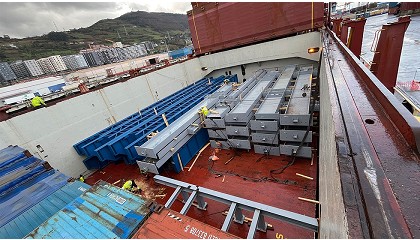 Logistics . Equipo de XGL Logistics Carga en bodega del mayor envío del proyecto: 37 vigas listas para su transporte. El proyecto consistió en el transporte de 95 vigas de hierro