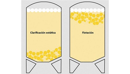 RS y realizar la prueba de las pectinas. Las adiciones posteriores y eventuales de agentes clarificantes no deben hacer que las partículas de gas sean demasiado pesadas, ya que un flóculo