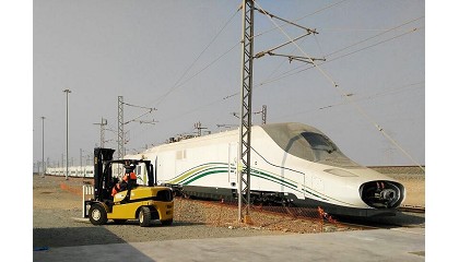 Talgo en el desierto saudí - 24/10/2016: 36 trenes AVE para los peregrinos de Medina a la Meca Nueve carretillas Yale de Hispaman para Talgo en el desierto saudí manutención&almacenaje