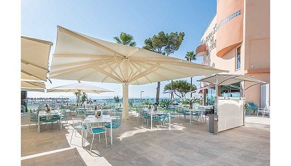 Alcudia Parasoles Adonis y Azores en el Hotel Paraíso de Alcudia, Mallorca. La playa de Alcudia, situada en Palma de Mallorca y que compitió por llegar a ser una de las mejores
