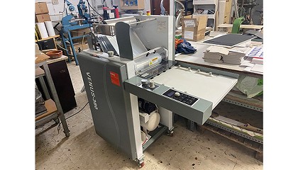 anillas, contracolados, displays e impresión textil. Para realizar el hot stamping y el plastificado en los trabajos impresos utilizan la laminadora Venus 380. Equipos y Maquinaria Gráfica (EMG) Laminadora Venus