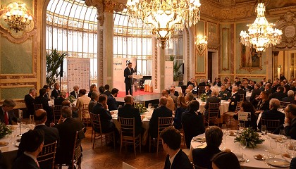 Ricardo Domínguez García-Baquero, presidente de Navantia, y Miguel Ángel Lamet, presidente del Grupo Comismar, a César Augusto del Río Juárez, regional head of CL Marine AXA Madrid International Hub.