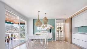 cabecero de cama de los dormitorios, simulando escamas de pez. Foto: Javier de Paz. Un cabecero en cerámica con piezas en forma de escama de pez Otro uso innovador con la cerámica