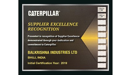 Excelente' de Caterpillar por segundo año consecutivo - 16/04/2024: Máximo galardón en el Proceso de Reconocimiento de la Excelencia de los Proveedores (SER) BKT obtiene la certificación 'Nivel Excelente' de Caterpillar