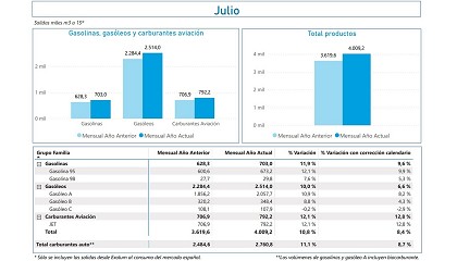 gasóleo de automoción aumentaron un 8,2% comparadas con el mismo periodo de 2023. En conjunto, las salidas de los carburantes de automoción alcanzaron los 2,8 millones de metros