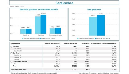 gasóleo de automoción aumentaron un 12,7% comparadas con el mismo periodo de 2023. En conjunto, las salidas de los carburantes de automoción alcanzaron los 2,5 millones de metros