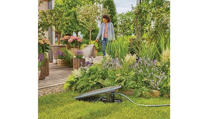 grifo Nuevo sistema de riego solar AquaBloom L Set de Gardena para un cuidado de las plantas inteligente e independiente Regar las plantas de forma automática en un huerto, una terraza
