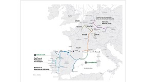 Hidrógeno. Mapa de H2Med. Los primeros ejes de la Red Troncal Española de Hidrógeno son el Eje Vía de la Plata, con su conexión con el Valle de Hidrógeno de Puertollano