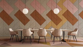 paredes, combinando rendimiento acústico con un acabado elegante. Entre las opciones disponibles, destacan Ecophon Clipso, un tejido técnico resistente y completamente personalizable que ofrece una absorción acústica de hasta clase