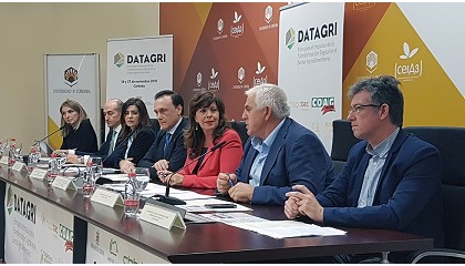 Phil Hogan, el ministro de Agricultura, Luis Planas, y el consejero de Agricultura de la Junta de Andalucía, Rodrigo Sánchez. A continuación, Olga San Jacinto, directora de Google Américas y española