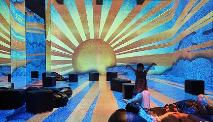 proyectores de Simon, el diseñador ha logrado proyectar la iluminación de manera precisa sobre ciertos elementos, brindando a los visitantes un baño placentero y uniforme de luz. Además de los proyectores