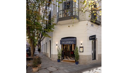 restaurante, uno tiene la sensación de haber retrocedido a los años 20, reforzado por la elección de mobiliario y luminarias. Lo que distingue al Café-Restaurante Delphina es su uso de materiales
