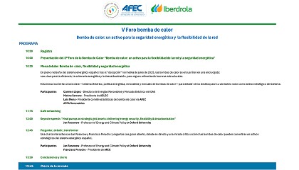 seguridad energética y la flexibilidad de la red - 26/09/2025: Lema del V Foro de la Bomba de Calor de Afec e Iberdrola Bomba de calor: un activo para la seguridad