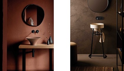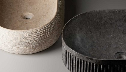 stone, metallic, wood y cement– presentan lavabos en diversos materiales, mientras que las tres últimas –texture, atelier y goldsilver & swarovsk– se enfocan en aplicaciones de porcelana con distintos acabados y diseños