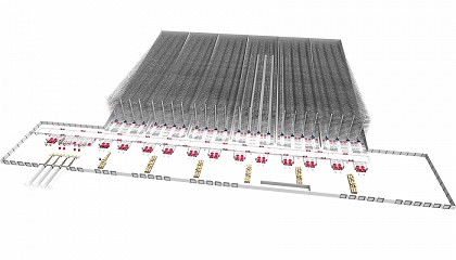 transelevadores Exyz para 29.376 ubicaciones; otra zona de 836 m2 para cubetas dotada de tecnología Flexi-shuttle (48 shuttle) 2 pasillos, 24 niveles y capacidad para 36.864 cubetas. Todos los procesos