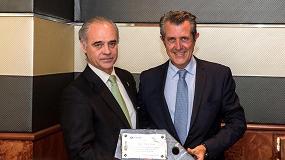 Aevecar, Alejandro Ripoll (a la derecha), entrega la placa conmemorativa a su predecesor, Rafael Pizarro, (a la izquierda de la imagen), en un acto de homenaje al segundo celebrado en diciembre