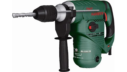 percusiones 1100-4500 bpm; energía máxima de impacto individual 2,0-10,0 J; diámetro de perforación en hormigón 38 mm; peso neto de 7 kg. Martillo combinado BH-1200 VS BMC.