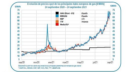 Brent y del Henry Hub de gas se han incrementado de forma notable. En 2021, el barril de crudo Brent cotizó en una media de 70,9 dólares por barril
