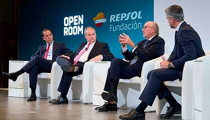GLP de Repsol, Siridia Berenguer, acompañado del director de la cátedra de movilidad sostenible de la Universidad Politécnica de Madrid, Ricardo Perera; y los profesores, Luis Veiga, de la Universidad