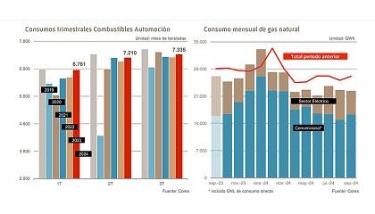 GLP y los fuelóleos registraron descensos del 16,3% y 0,2%, respectivamente. Los datos acumulados anuales son positivos en la mayoría de los productos: querosenos (12,3%), fuelóleos (6,7%) y gasolinas