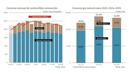 GLP también disminuyó un 1,8% interanual. Descenso en el consumo de gas natural El consumo total de gas natural en enero de 2025 fue de 32.393 GWh, lo que representa