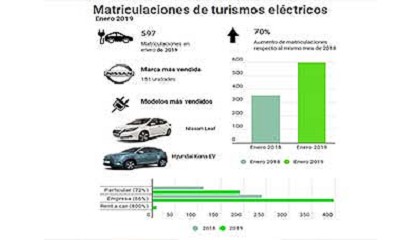 GANVAM . Según el canal, el de empresas matriculó 397 unidades (un 66% más), mientras que el de particulares anotó 191 turismos eléctricos puros, creciendo un 72% con respecto a enero