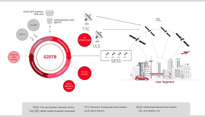 órbita y sincronización de tiempo capaces de procesar datos de enlace entre satélites, un módulo de monitorización para el servicio de tiempo Galileo, un generador de mensajes para dar soporte
