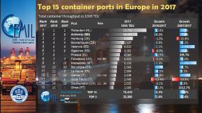 TEUs - 23/02/2018: El Port de Valencia sube al puesto que baja Algeciras Port de Barcelona, el de mayor crecimiento en el TOP 15 europeo de tráfico de TEUs manutención&almacenaje