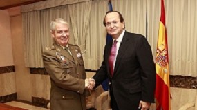 BAM con el Director General de Armamento y Material, Teniente General Juan Manuel García Montaño. Minutos después de la firma comenzó simultáneamente en Ferrol y Cádiz el corte de chapa