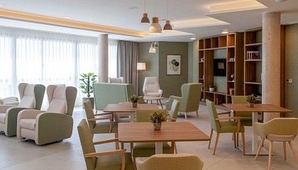 coral y turquesa son los colores predominantes en cada una de las plantas y se combinan con maderas y vegetación, que igualmente se integran en la decoración. En este centro